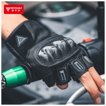 Olvídese de la sensación de asfixia con el diseño confort de medio dedo, estos guantes fabricados en cuero de cabra y refuerzo de fibra de carbón en los nudillos, son adecuados para carreras de motos, ciclismo todoterreno, pesca, otros deportes al aire libre.