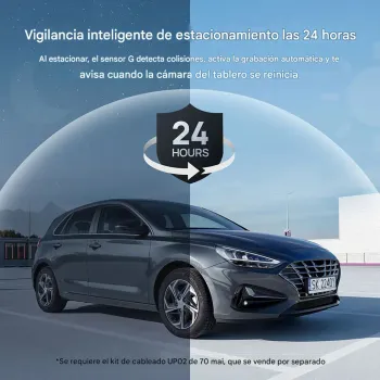 - Modo estacionamiento: time‑lapse 1fps + alerta al encender tras impacto (necesario kit UP03)