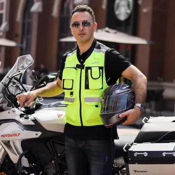 Chaleco con reflectantes para motociclismo fabricado en Tela Oxford 600D resistente y fuerte, pero suave y cómoda al tacto para mantenerte seguro.